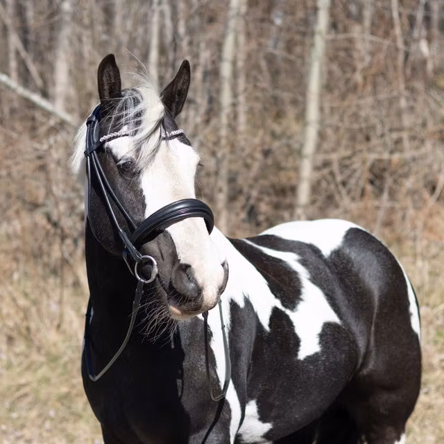 - All förslutning sitter i ett väl vadderat nackstycke för att ge ett elegant och rent intryck, samt det finns inga spännen som kan skava för hästen