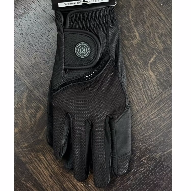 Svarta ridhandskar tillverkade i Mesh-tyg som har Tochscreen funktion för mobilen. Bra grepp med snygg detaljer som ger en elegans. Perfekt passfrom.