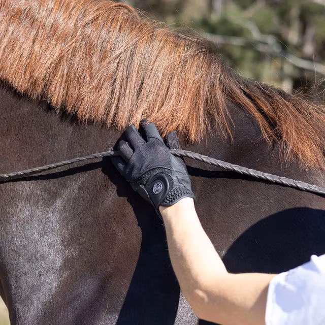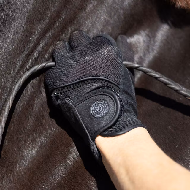 Eleganta svarta ridhandskar i 3D Mesh-tyg som aktivit andas. Touchscreen-funktion för enkel mobilanvändning.