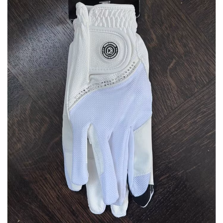 Stilrena vita ridhandskar i Mesh-tyg som gör att handen andas. Har fingertoppar med Tochscreen funktion för mobiler. Mycket bra grepp och passform.
