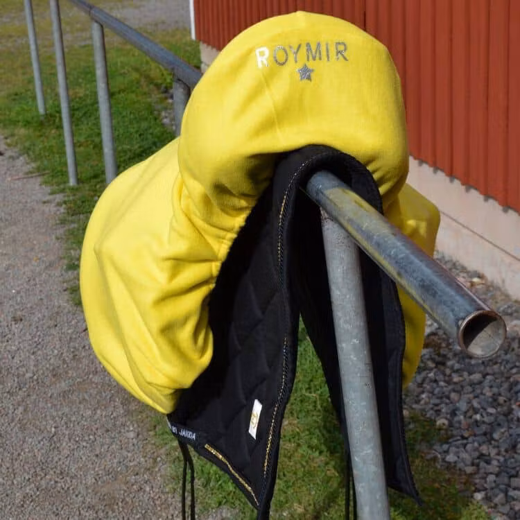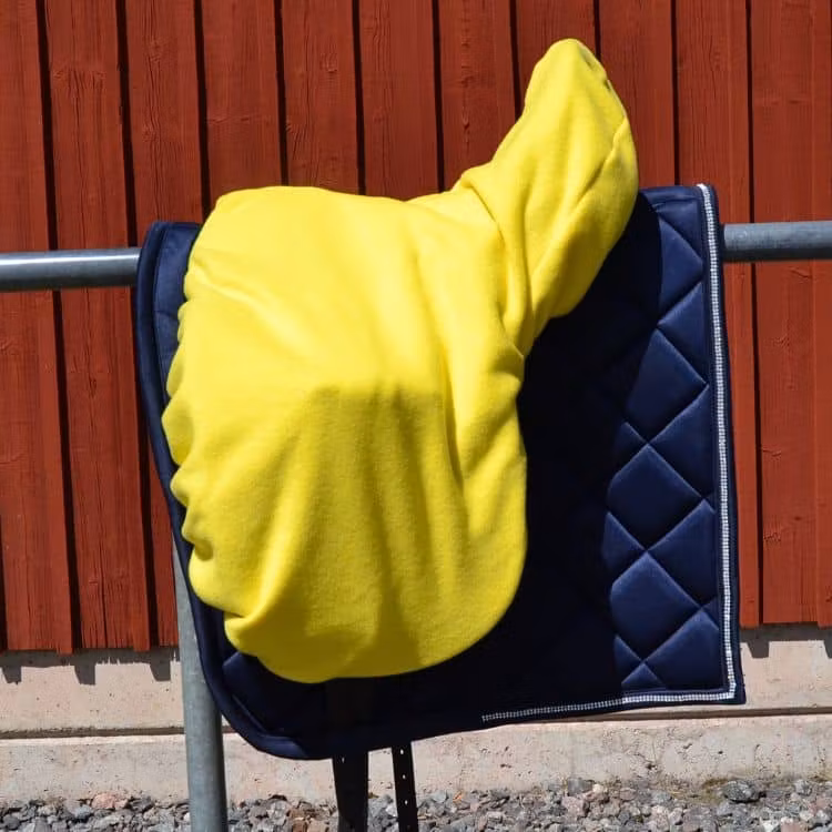 Köp gult sadelöverdrag till sadeln. Leveranstiden är cirka tre veckor, det kan gå lite snabbare. Sadelskyddet är one size vilket innebär att det passar bra till både hopp, allround och dressyrsadlar. Men ange gärna när du beställer om sadelöverdraget skall sitta på en allround, hopp eller dressyrsadel så anpassar vi gummibandet efter sadelmodell.