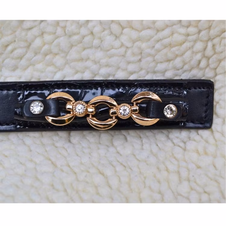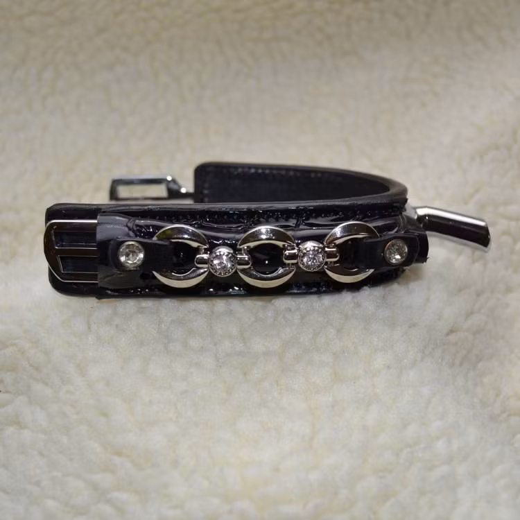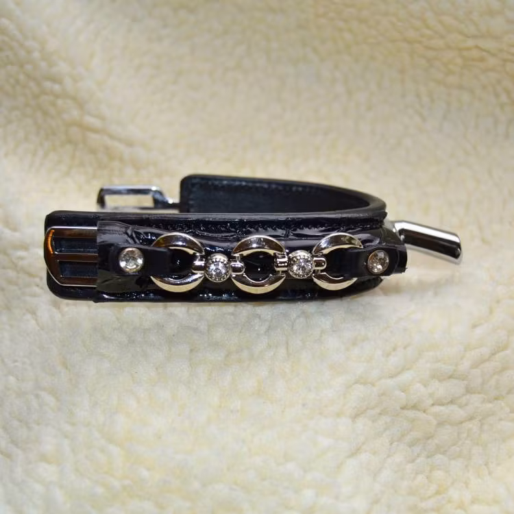 Skydda dina stövlar med stil! Våra svarta sporrskydd dekorerade med en kedja med strass detaljer kombinerar elegans och funktion på bästa sätt. Det sitter stadigt på plats runt sporrarna och ger din ridutrustning en exklusiv look.