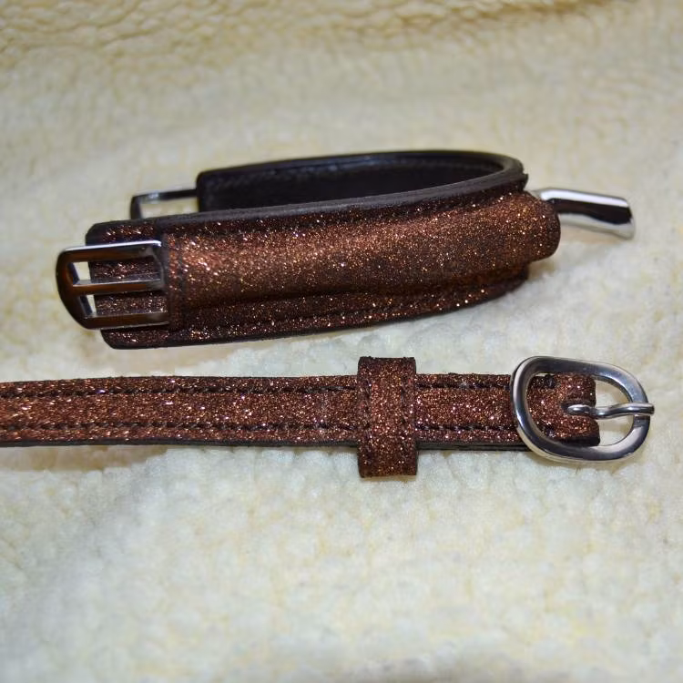Glittra i sadeln med stil. Vårt kompletta glitterkit med sporremmar och sporrskydd är perfekt för dig som vill ha både funktion och glam i ridutrustningen. Här får du ett matchande set som skyddar dina ridstölvar och samtidigt drar blickarn till sig med elegant glitterfinish.
