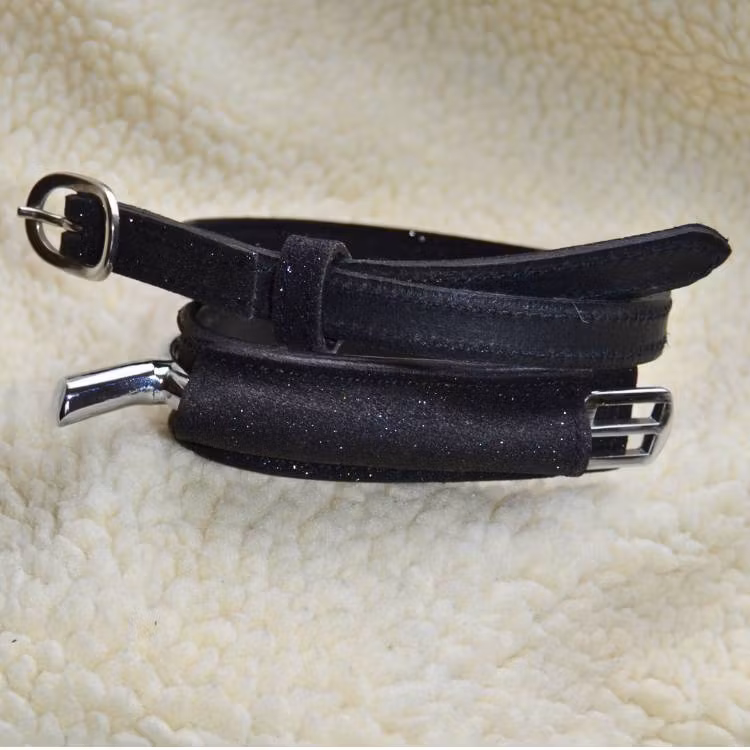 Glittra i sadeln med stil. Vårt kompletta glitterkit med sporremmar och sporrskydd är perfekt för dig som vill ha både funktion och glam i ridutrustningen. Här får du ett matchande set som skyddar dina ridstölvar och samtidigt drar blickarn till sig med elegant glitterfinish.