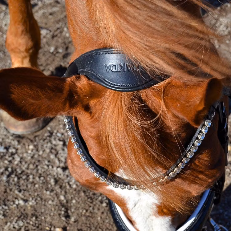 Alla våra träns är tillverkade i mjukt läder och har ett anatomiskt mjukt nackstycke för att undvika tryck på atlaskotan. Det anatomiska nackstycket gör så att tränset ligger fint på hästen och skapar en skön känsla.